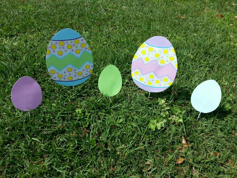 Amenon double sided printing 9 pcs easter yard sign outdoor lawn decorations easter decorations outdoor bunny chick and dinosaur eggs yard sign with stakes for easter party supplies easter props. Free shipping on orders over 25 shipped by amazon.