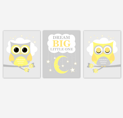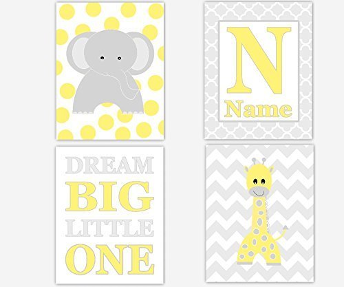 Yellow Gray Nursery Wall Art Elephant Giraffe Dream Big Little One