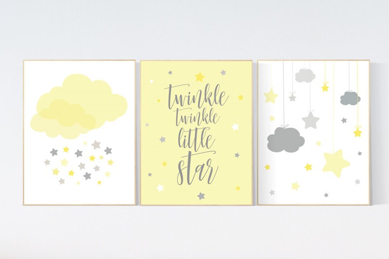 Yellow gray nursery decor. Etsy is the home to thousands of handmade vintage and one of a kind products and gifts related to your search. Get it as soon as fri sep 6. Confetti fox elephant dream big baby nursery wall art decor 8x10 unframed set of 4 prints gender neutral boy girl lullaby twinkle star moon quotes.