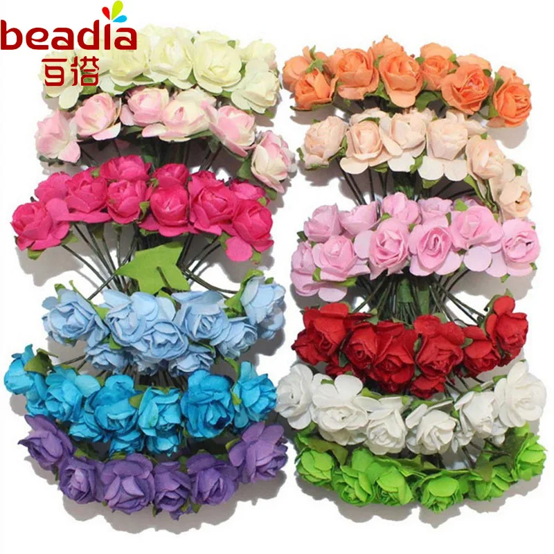 144 Pcs Handwork Artificial Fake Paper Rose Flowers 14 Colors For