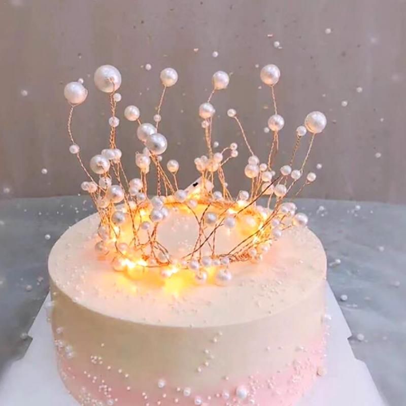 2020 Shiny Handmade Pearl Princess Crown Headdress Cake Topper