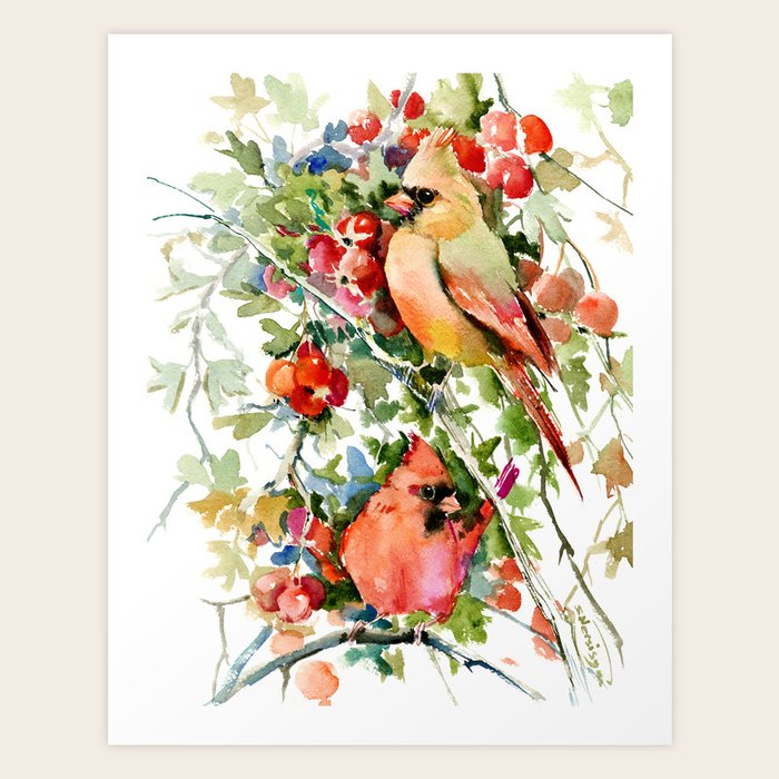 Cardinal Birds And Hawthorn Cardinal Bird Christmas Design Art