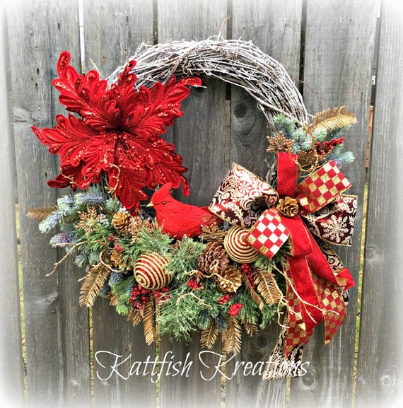 Cardinal Wreath Winter Wreath Christmas Cardinal Wreath Etsy