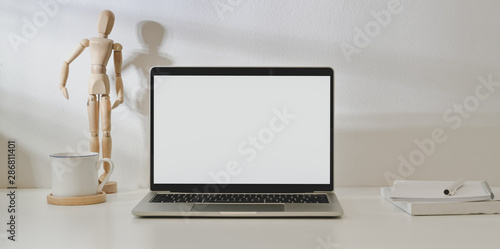Simple Workplace With Open Blank Screen Laptop Computer And