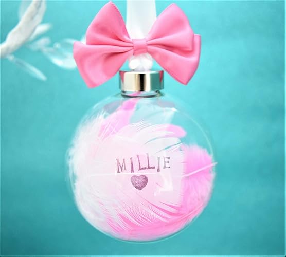 Feather Name Bauble Personalised Glass Globe Family Christmas Tree