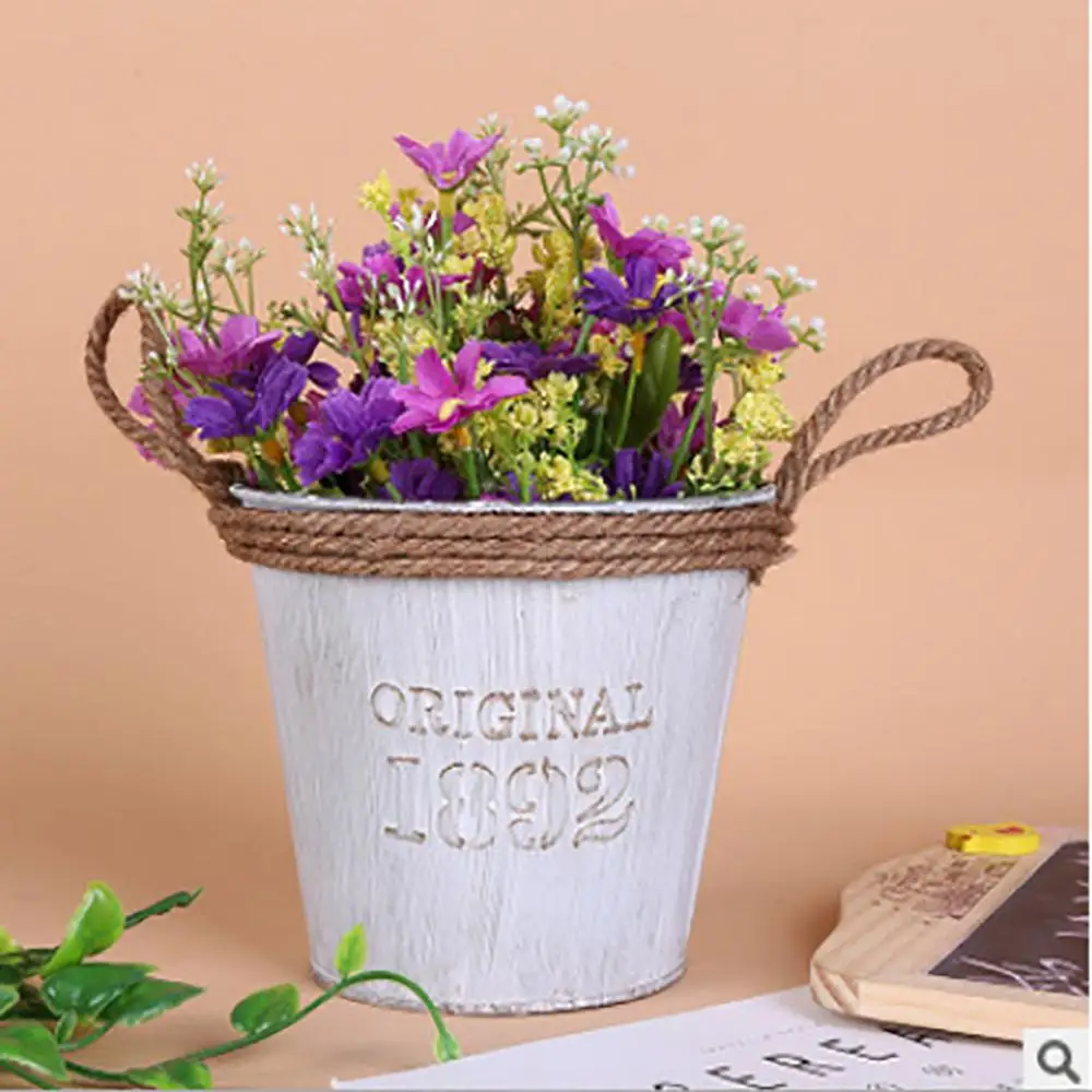 Vintage Metal Iron Keg Flower Pot Hanging Balcony Garden Plant