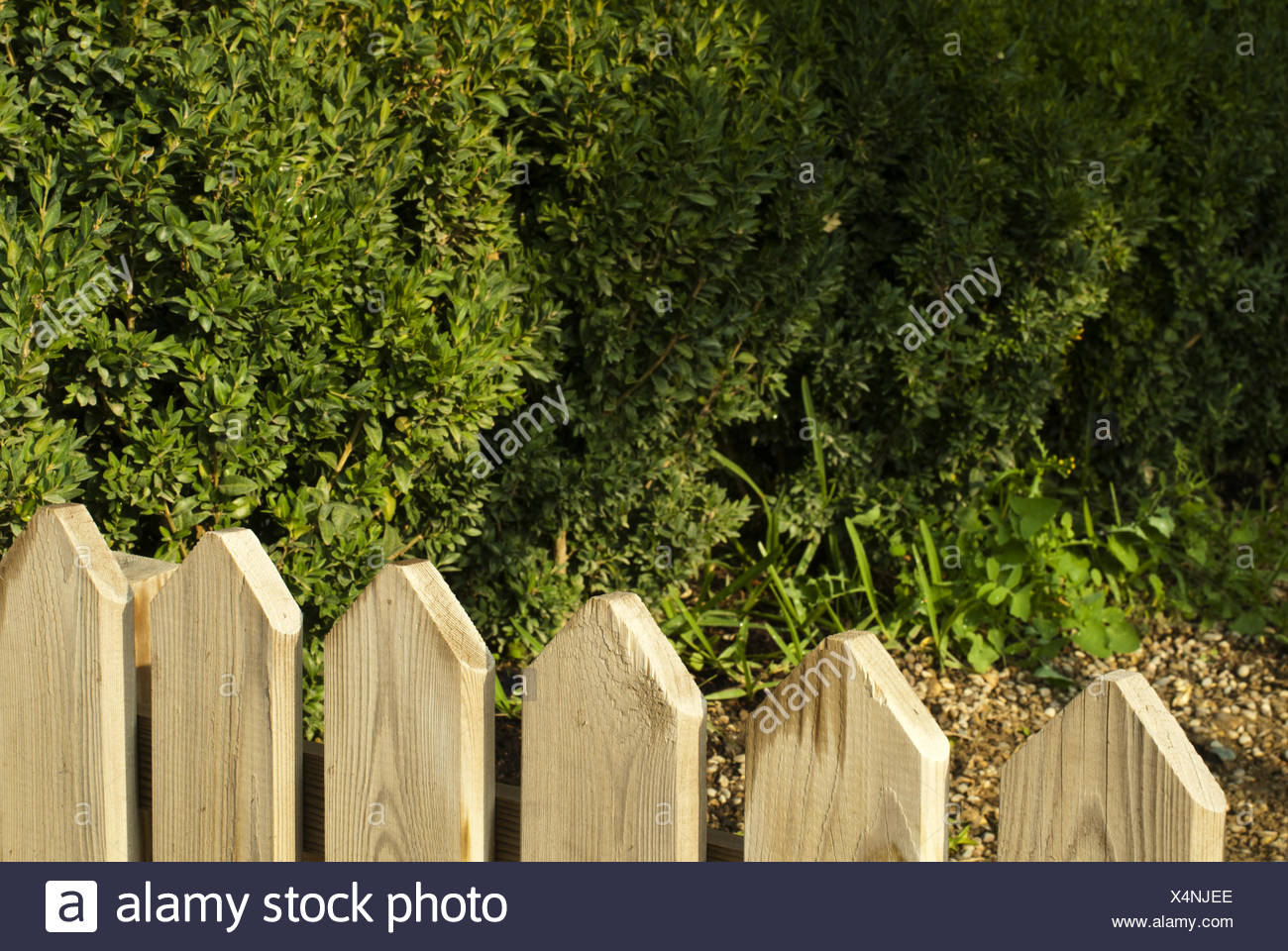Wooden Decorative Fence And Green Garden Stock Photo 278300022