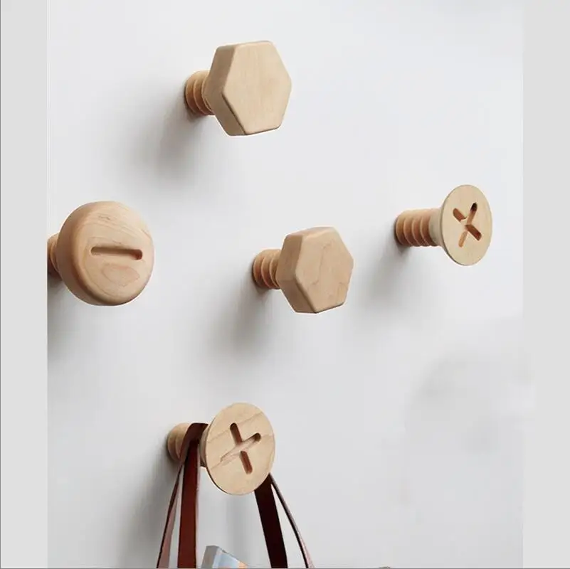 Creative Screw Wood Hook Wall Mounted Coat Hook Decorative Key