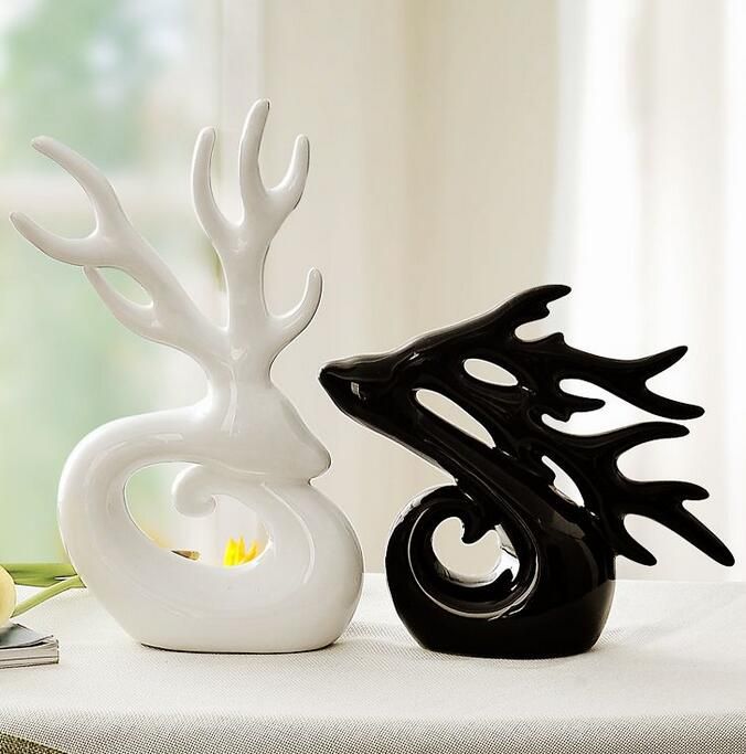 2020 Ceramic Couples Deer Head Home Decor Crafts Room Decoration