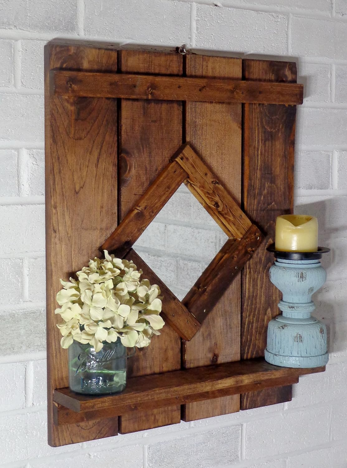 Amazon Com Renewed Decor Diamond Wood Mirror With Shelf Wall