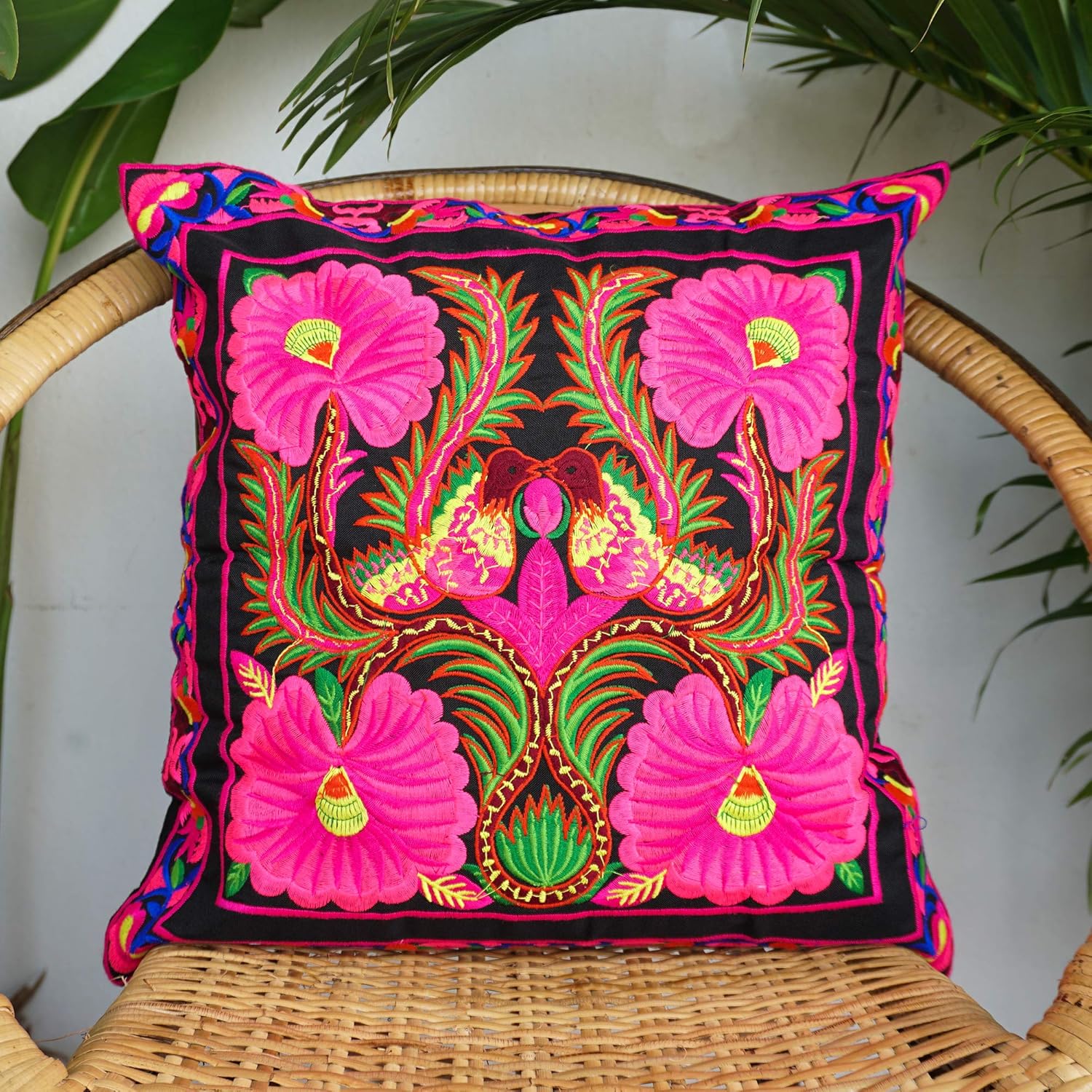Amazon Com Orchid Hmong Tribe Embroidered Cushion Boho Cushion