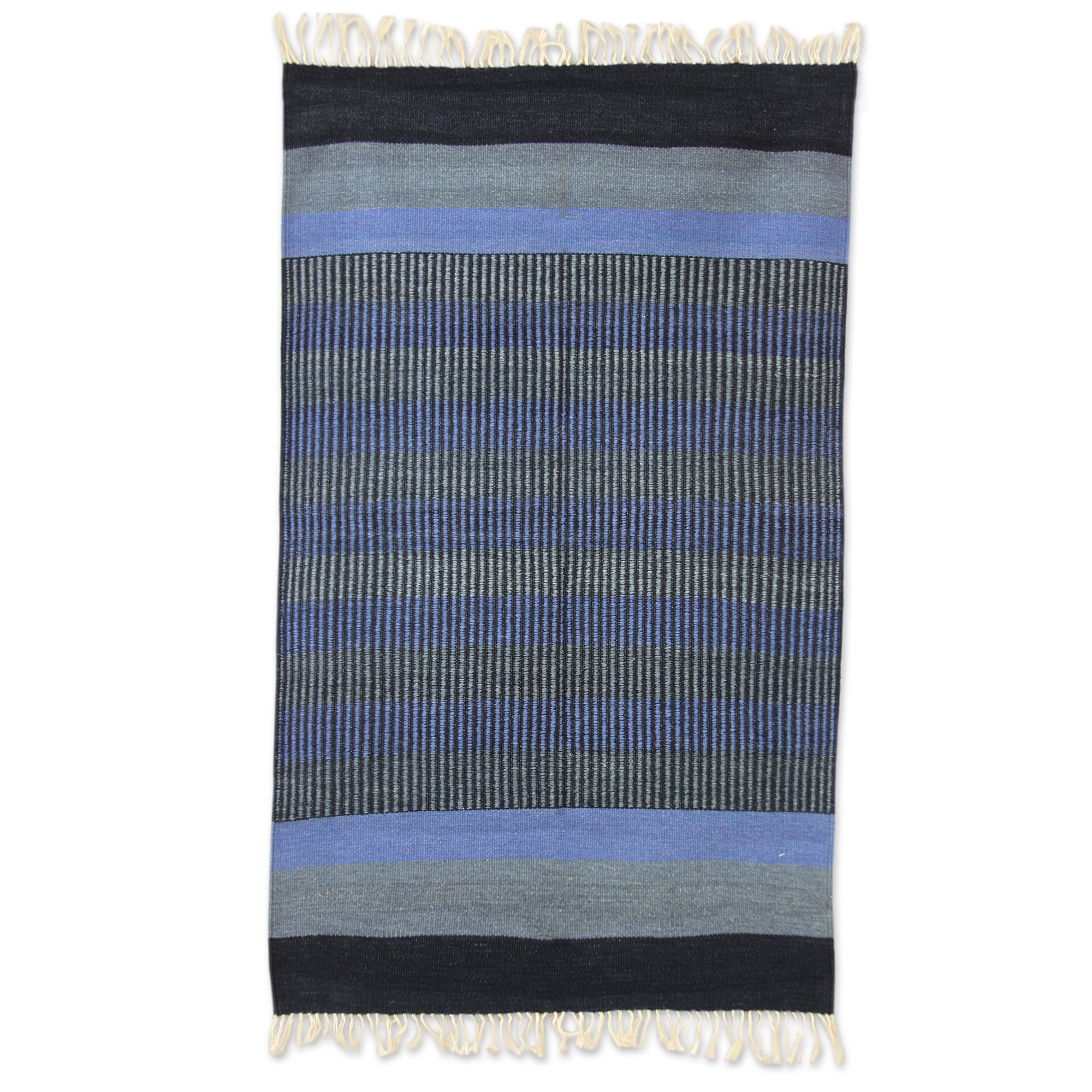 Novica Fair Trade Striped Blue Shadow Harmony Expertly Hand Woven