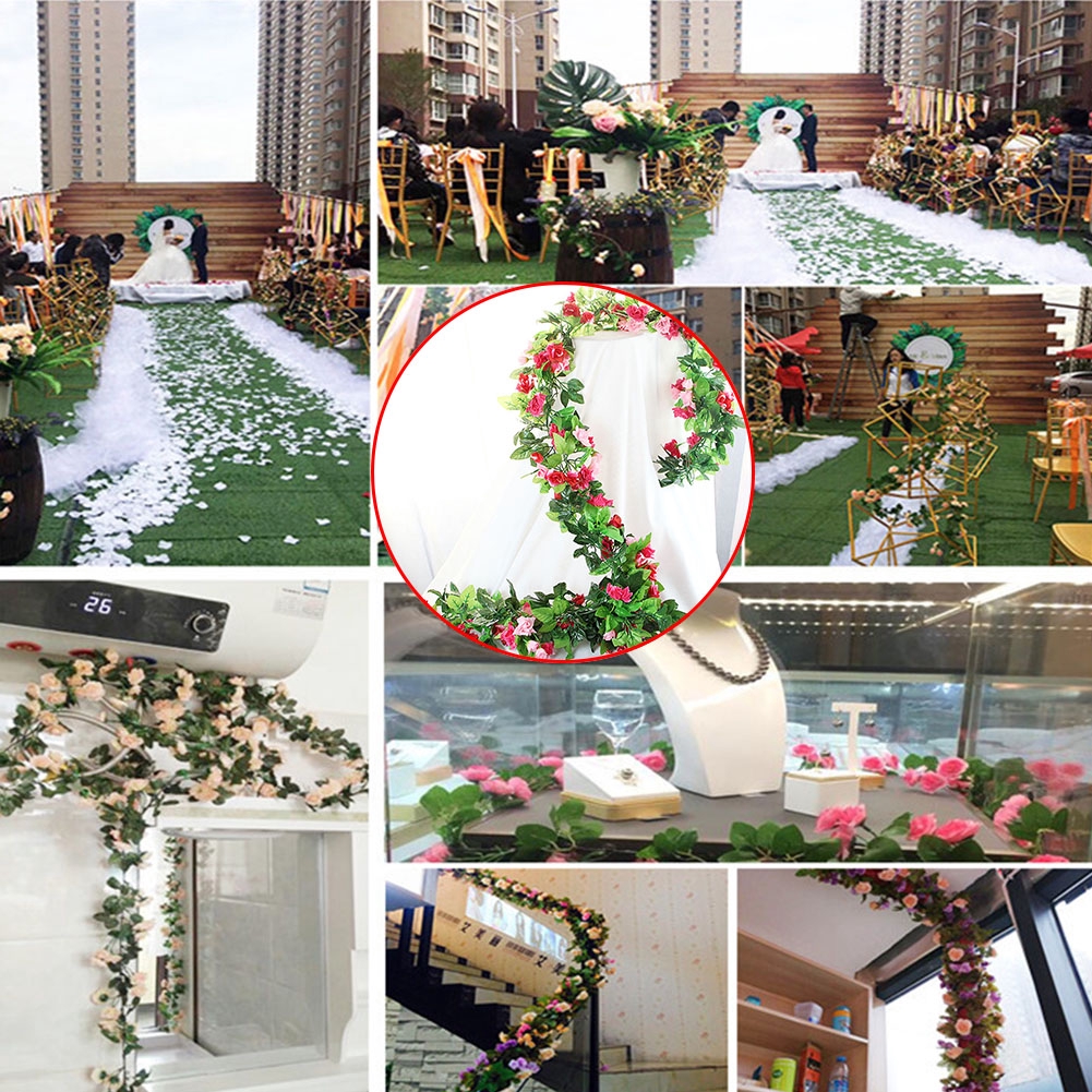 2 4m Artificial Flower Vine Fake Silk Rose Ivy Flower For Wedding