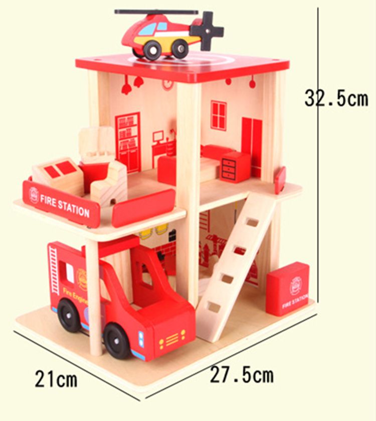 2020 Fire Station Wood Toys Simulation Toy House Building Model
