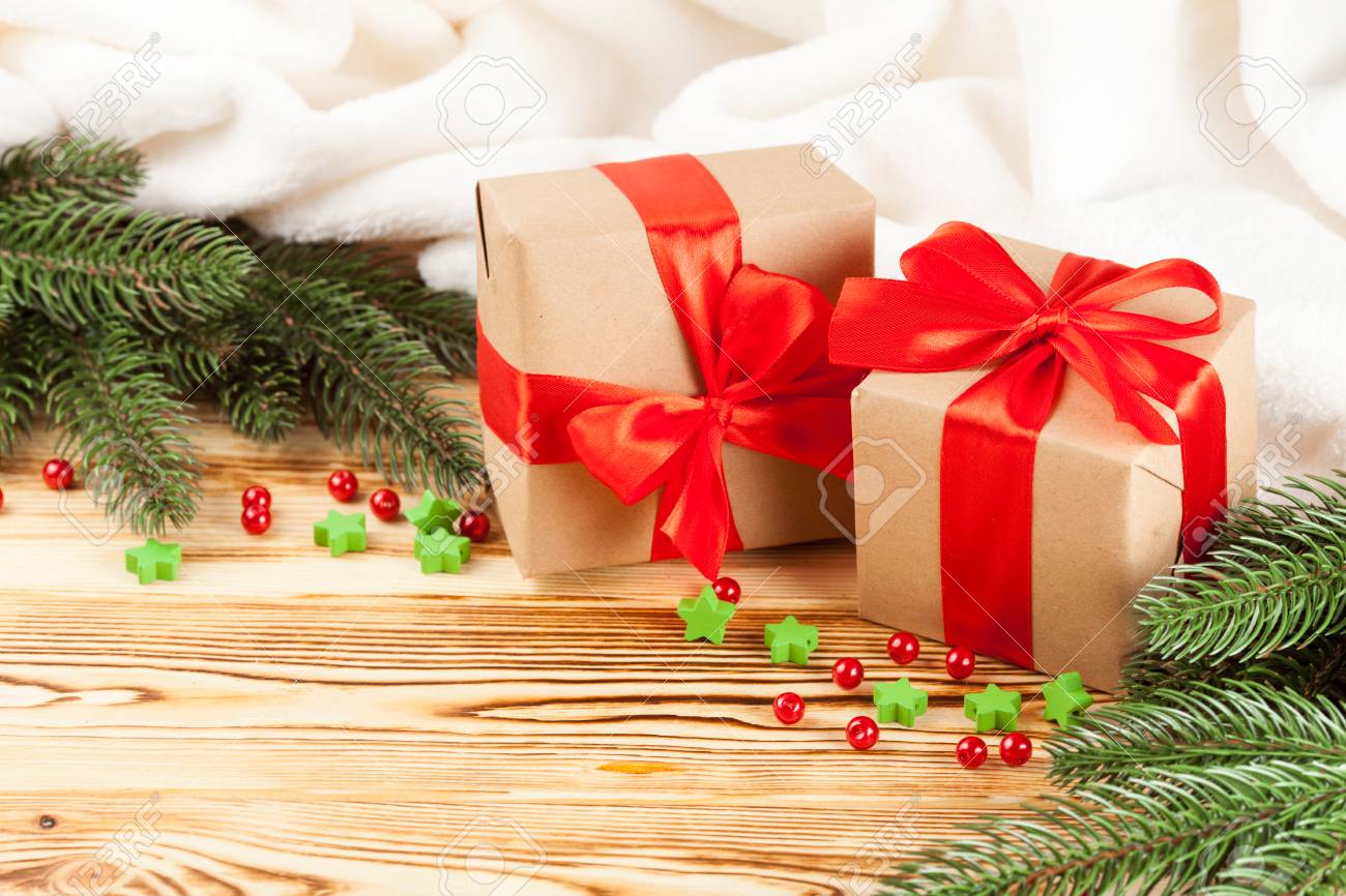 Craft Gift Boxes With Red Ribbon And Bow Green Christmas Tree