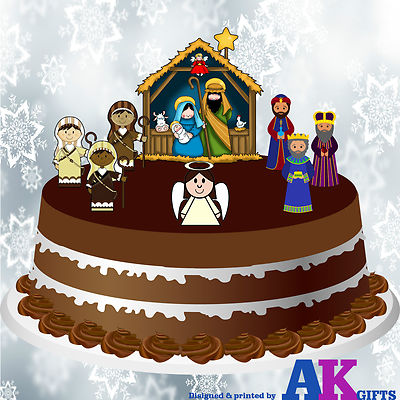 Nativity Scene Christmas Traditional Edible Cupcake Toppers Cake