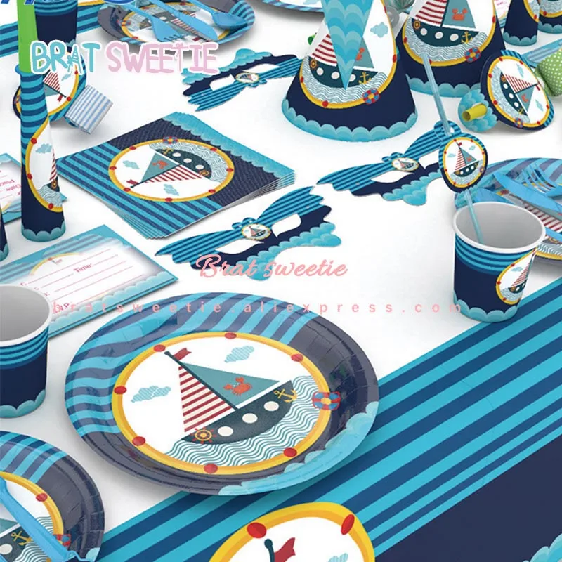 Nautical Party Ship Arch Paper Plates Straws Cups Tablecloth Kids