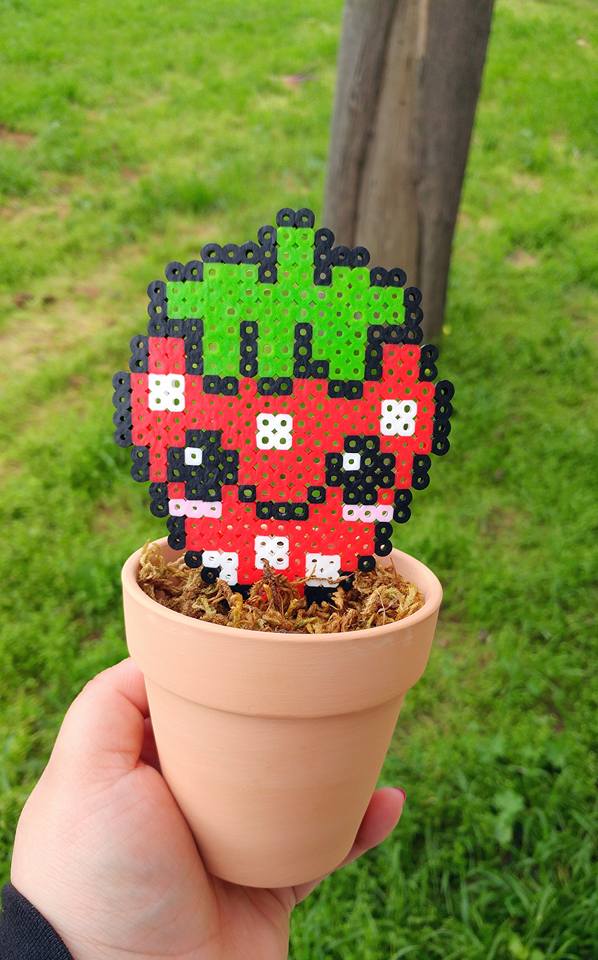 Kawaii Strawberry Perler Bead Plant 8bit Plant Home Decor