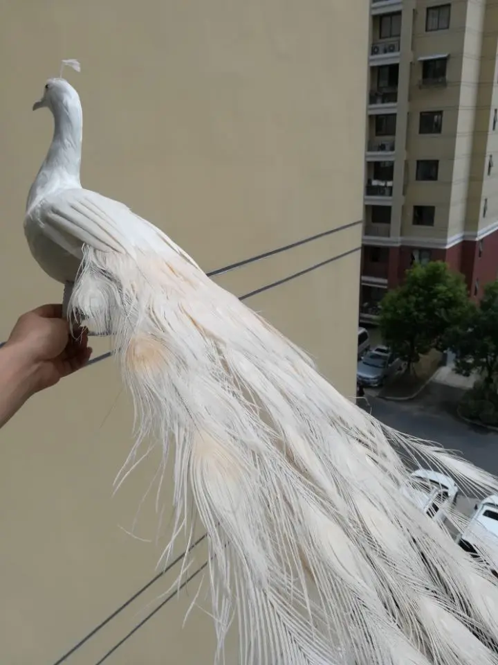 Real Life Bird White Feathers Bird Peafowls Large 120cm White