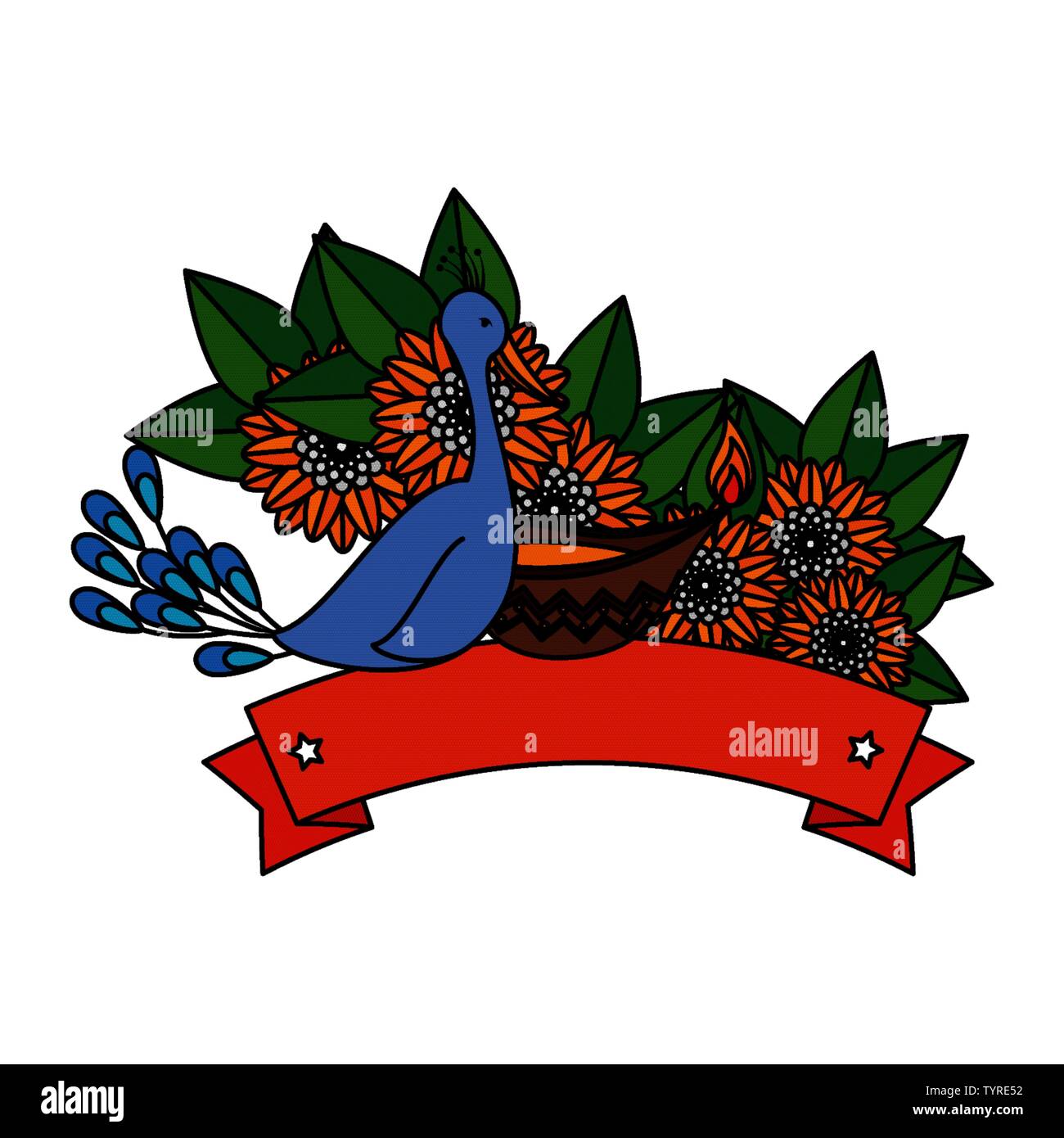 Indian Peacock Bird Exotic With Floral Decoration Stock Vector Art