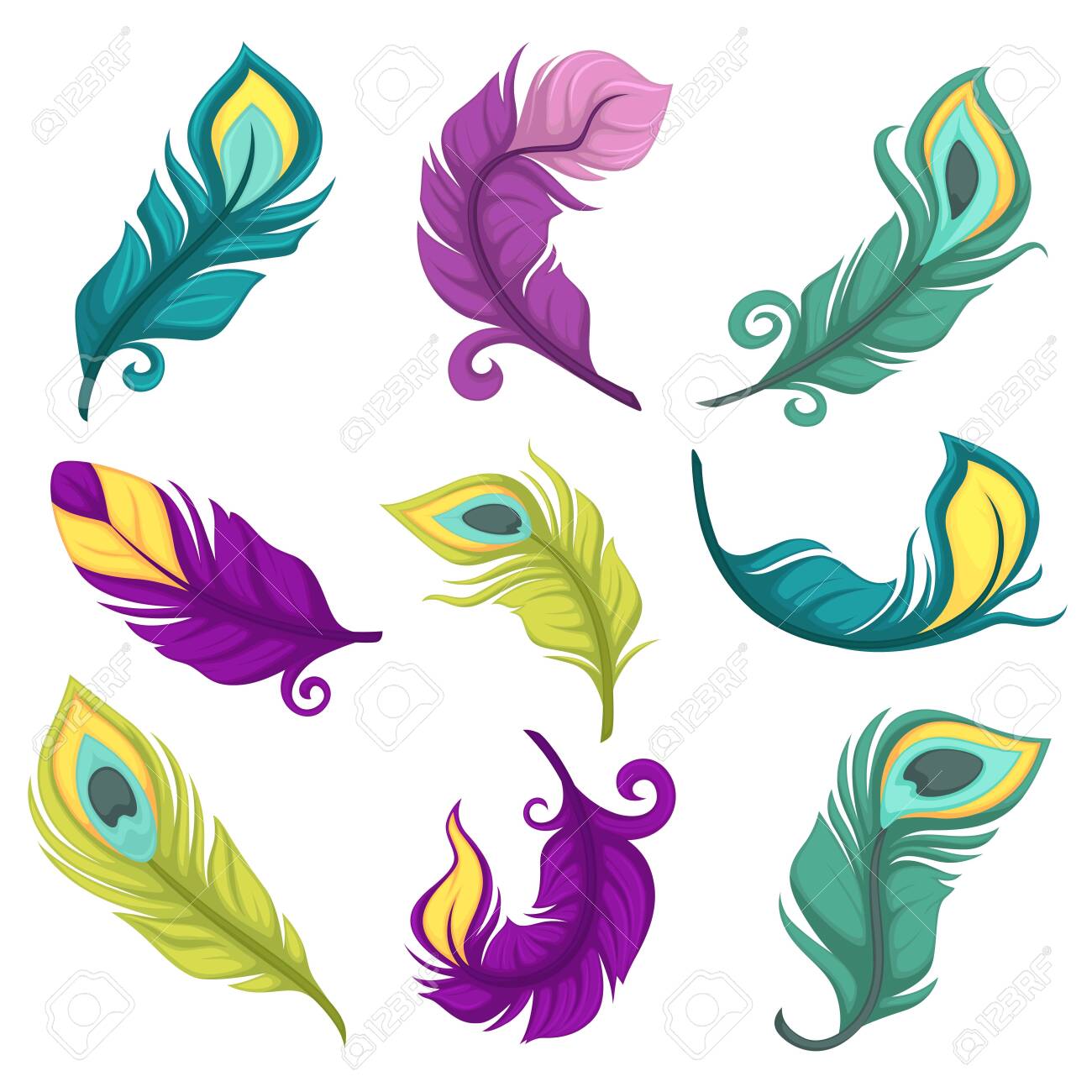Peacock Feathers Festive Decor Bird Plumage Isolated Objects