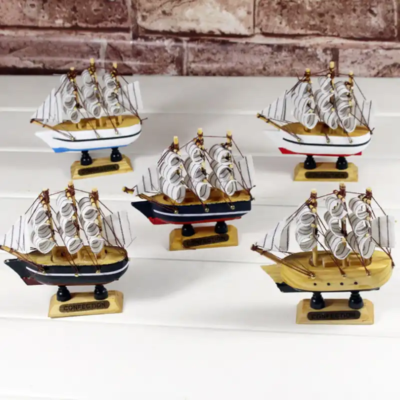 New Small Handmade Wooden Ship Model Pirate Sailing Boats Toys For