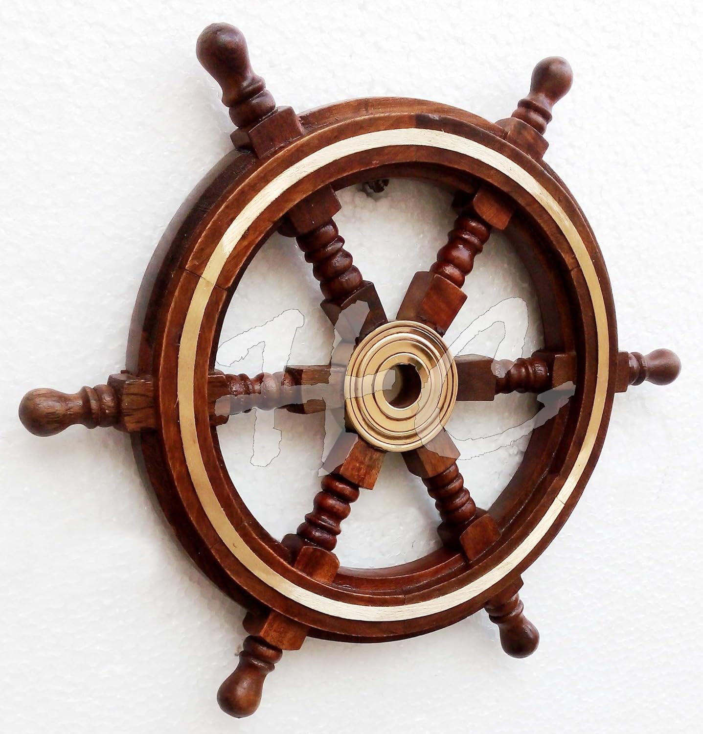 Amazon Com Nautical Wooden Ship Wheel Pirate Captain Brass Boat