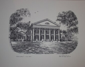 Print Of Pen Ink Drawing Bayside Plantation Sunset La Etsy