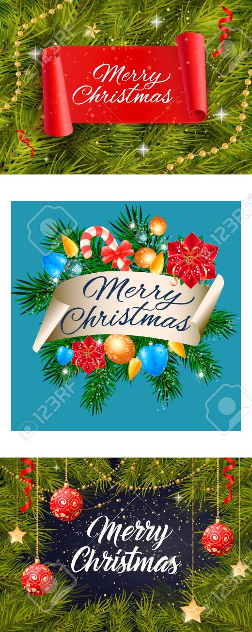 Merry Christmas Banner Set With Streamer Decorative Design Can