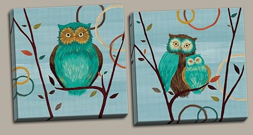 Amazon Com Gango Home Decor Adorable Teal And Brown Owl Family