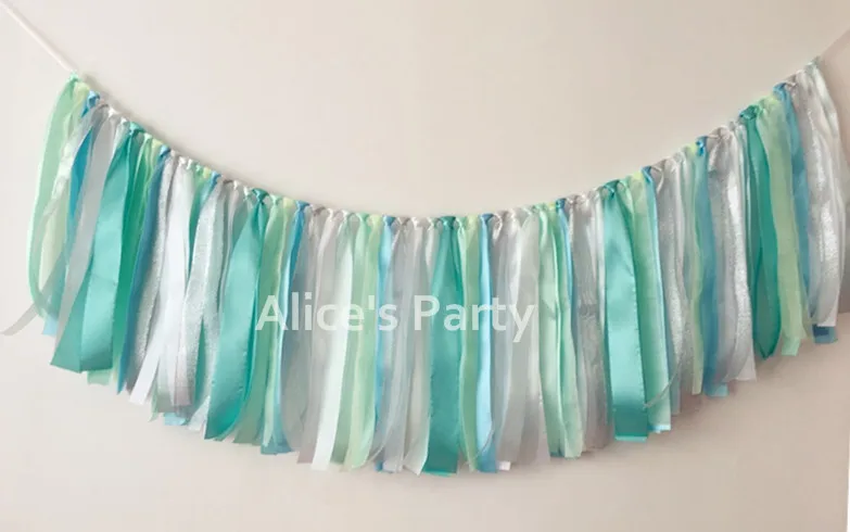 New Tiffany Blue Ribbon Wedding Party Banner Tulle Rag Tied Flag