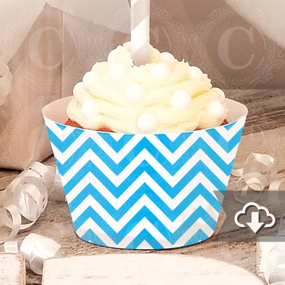 Turquoise Blue Cupcake Wrappers Chevron Print Pdf Printables