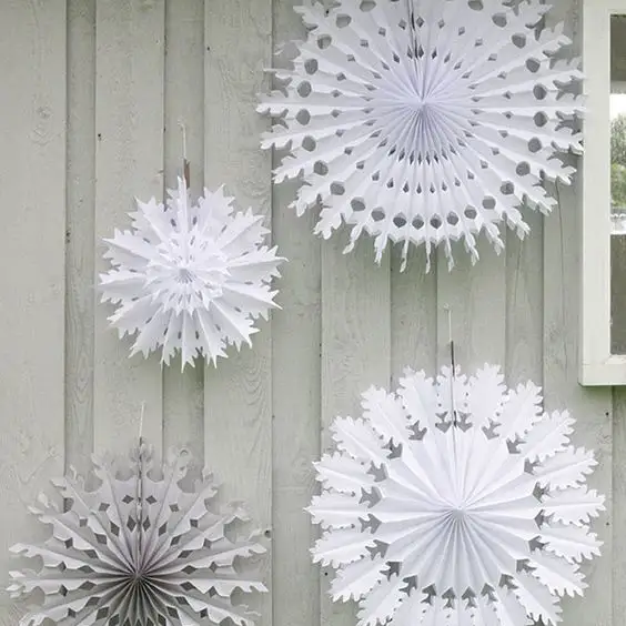 Cut Out Tissue Paper Snowflakes White Snowflake Fan Birthday
