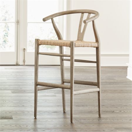 Crescent Weathered Grey Rush Seat Bar Stool Crate And Barrel