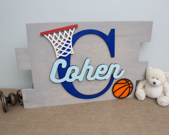Basketball Decor Basketball Nursery Art Kids Name Sign Wood Etsy