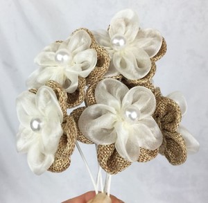 6 Burlap Organza Pearl Flowers 5cm Scrapbooking Cake Decorating