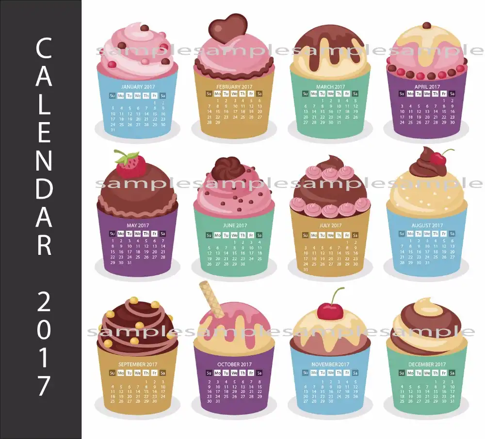 2017 Cupcake Calendar Post Print Pictures Modern Wall Art