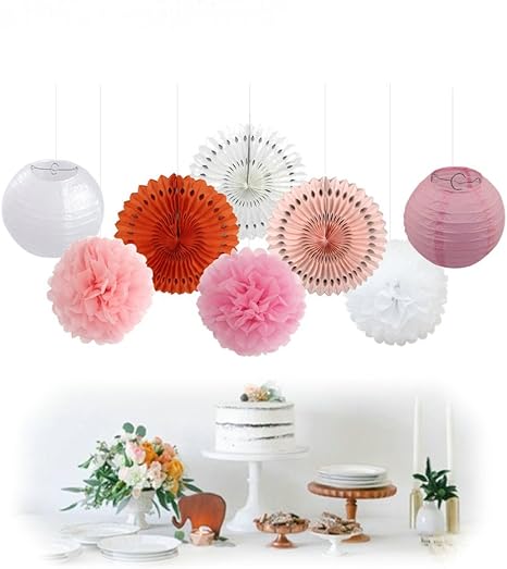 Amazon Com Pink White Tissue Hanging Paper Pom Poms Paper