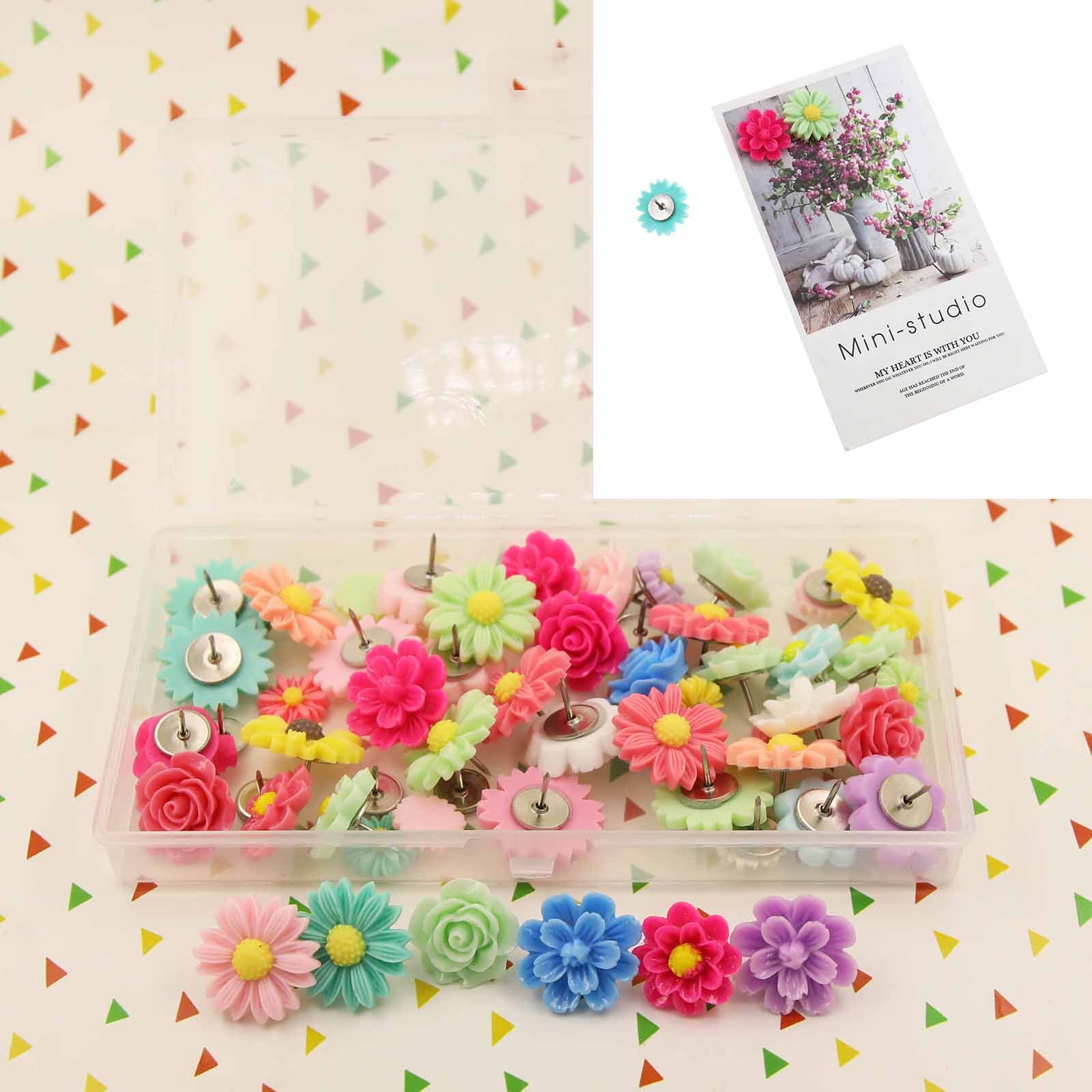 50pcs Multi Colored Decorative Pushpin Set For Wooden Walls Cork