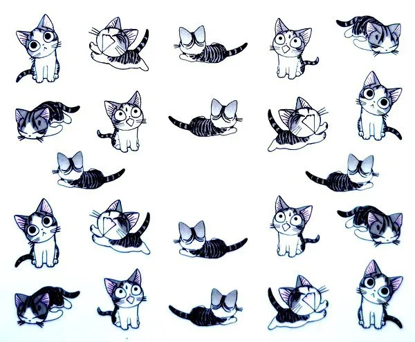 New Water Transfer Nail Art Stickers Decal Cute Cats Black White