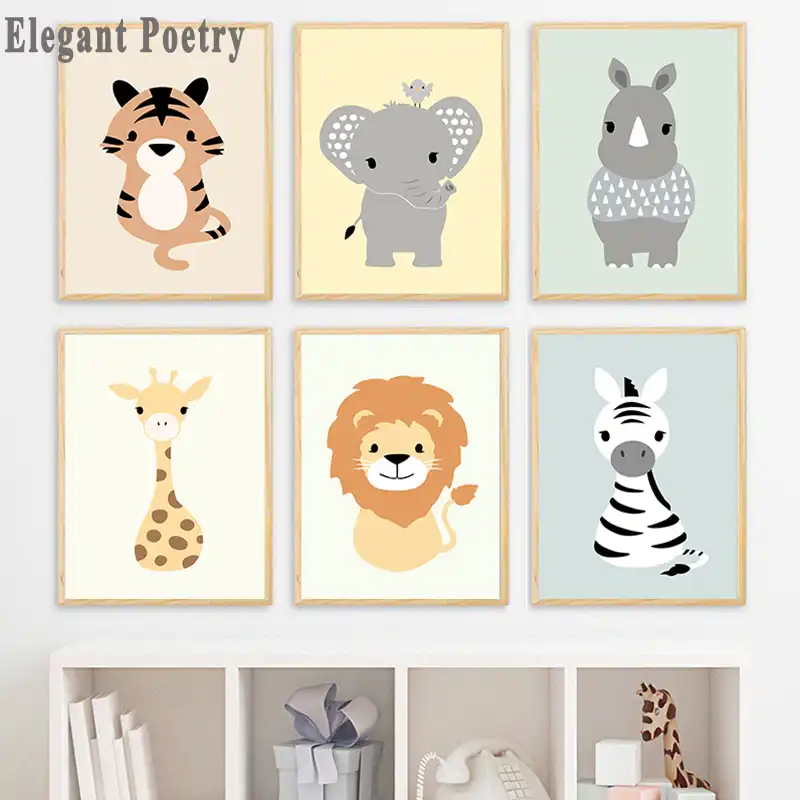 Zebra Animal Tiger Elephant Nursery Wall Art Canvas Painting
