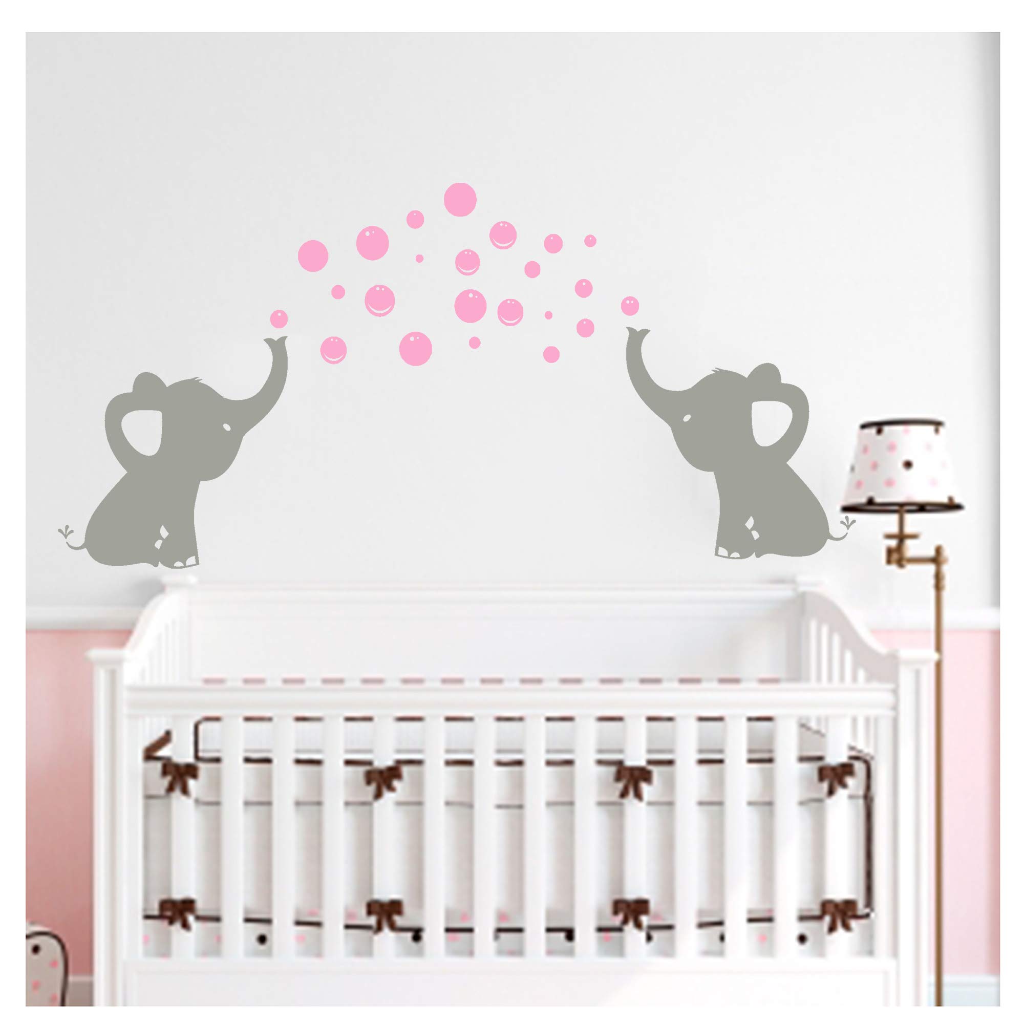 Bdecoll Family Elephants Nursery Wall Stickers Or Pink Bubble