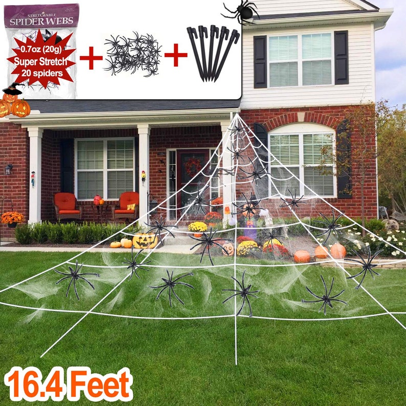 Umiku 140 halloween spider web 50 fake spider decorations giant spider web halloween spider decoration for indoor outdoor halloween decorations for party costume house garden yard wall bar. Everyone is sure to love this decoration. How to setup your giant halloween spider web.