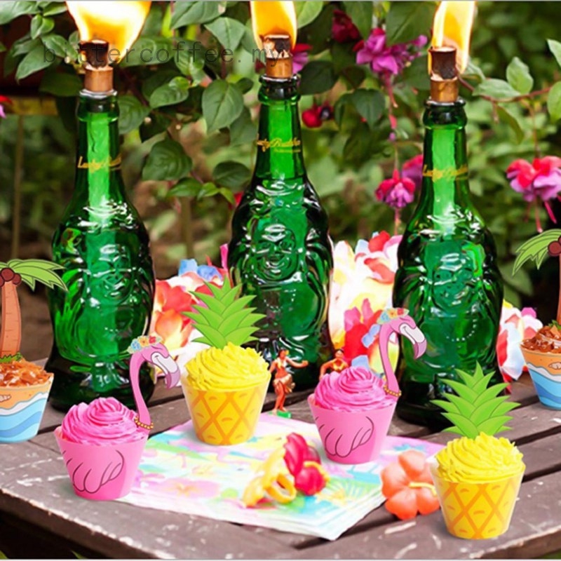 2018 Diy Cupcake Toppers Wrappers Tropical Hawaiian Flamingo