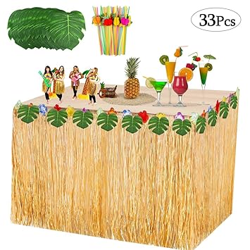 Vston Hawaiian Table Skirt Tropical Luau Party Decorations With