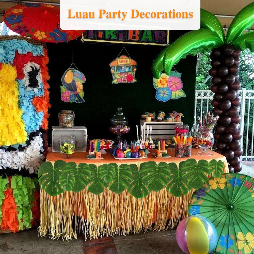 Ourwarm Hawaiian Party Grass Table Skirt Artificial Palm Leaves