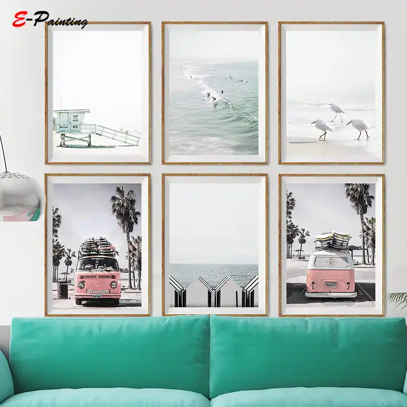 Santa Monica Beach Brooklyn Bridge Wall Art Canvas Painting Nordic