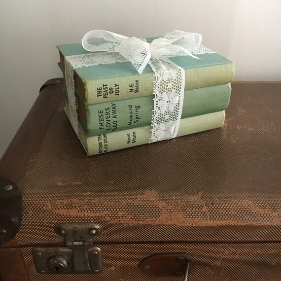 Vintage Book Stack Decorative Books Blue Green Etsy