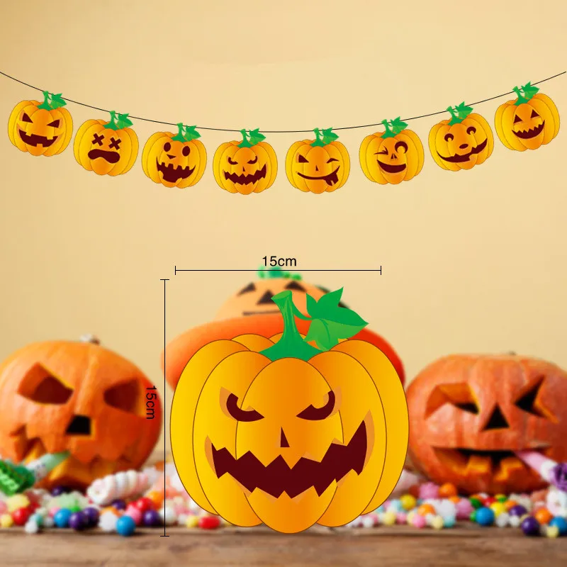 Halloween Decoration Prop Spider Bat Circle Bunting Black Orange