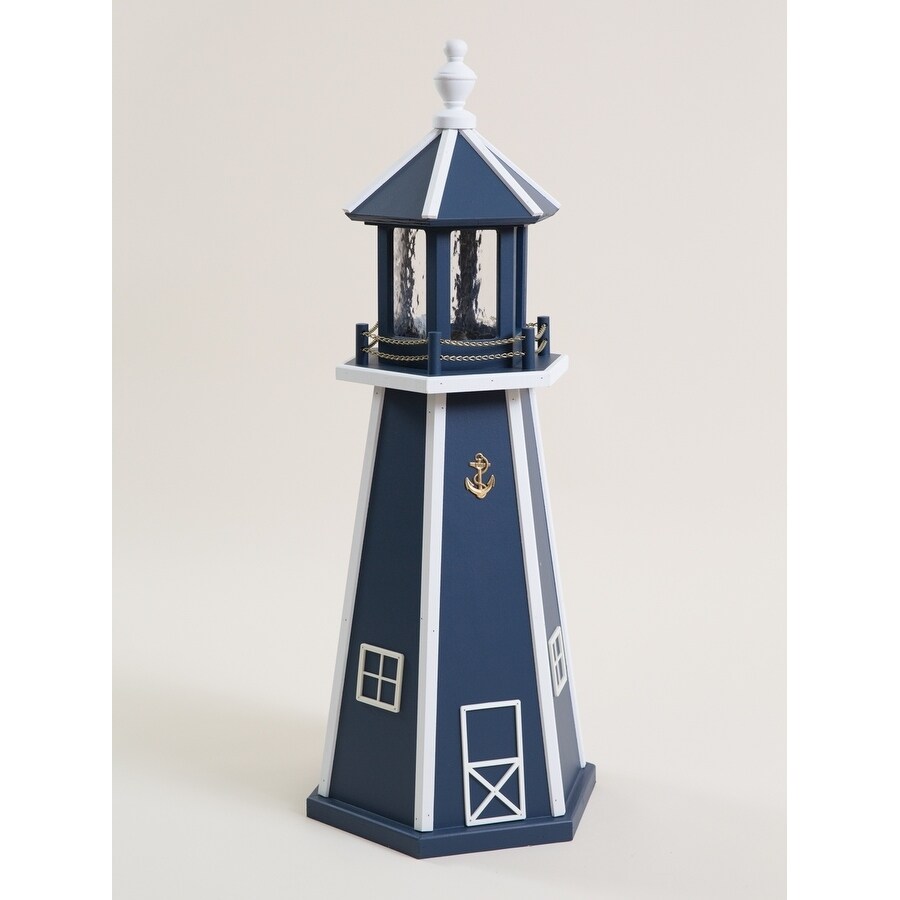 Shop Navy Blue White Poly Lumber Lighthouse W Solar Light On
